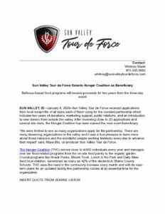 • Sun Valley Tour de Force Donates One Million Dollars to The Hunger Coalition
