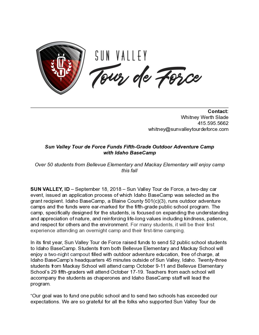 • Sun Valley Tour de Force Gifts $450,000 to Eleven Nonprofits