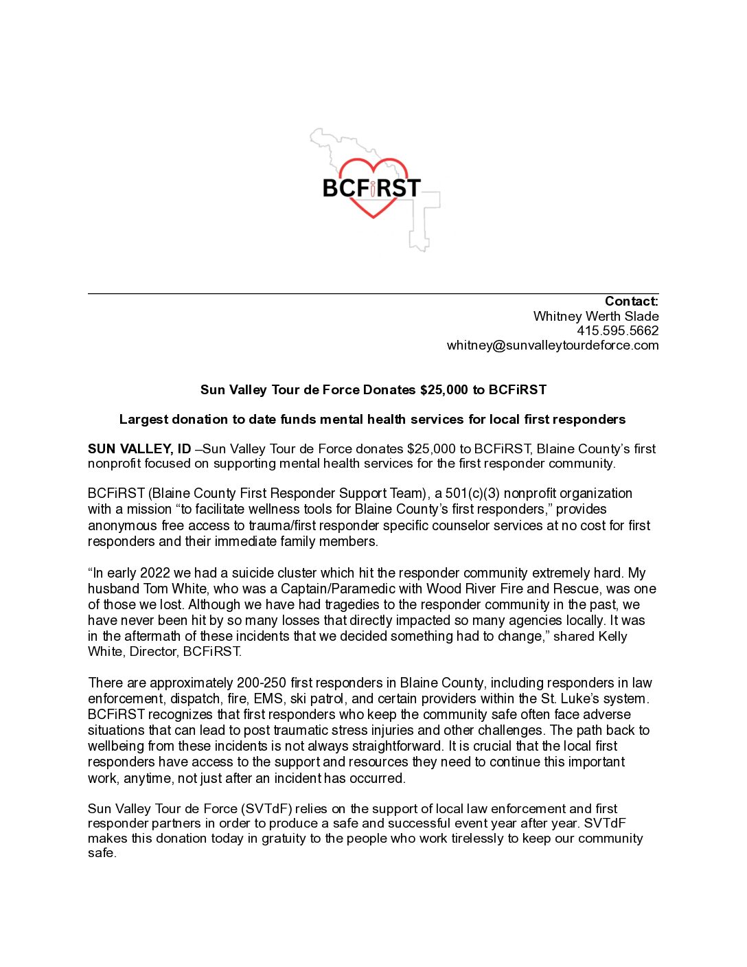 • Sun Valley Tour de Force Donates $25,000 to BCFiRST